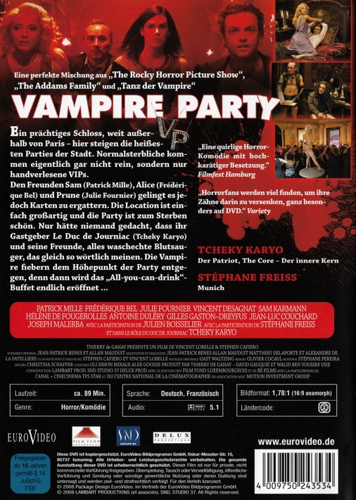 Sam, Prune et Alice sont trois amis squatters de soirées. Le jour où ils dénichent des invitations pour la très mystérieuse «Nuit Médicis», ils pensent avoir décroché le gros lot. Ils déchanteront vite car leurs hôtes sont des vampires et que tous les invités sont là pour leur servir de buffet. Dès lors, nos trois comparses tenteront de s'échapper par tous les moyens, entraînant dans leur fuite, Édouard, indécrottable boulet, Krinine, dentiste pour stars et Jessica, femme de mafieux au QI désastreux.