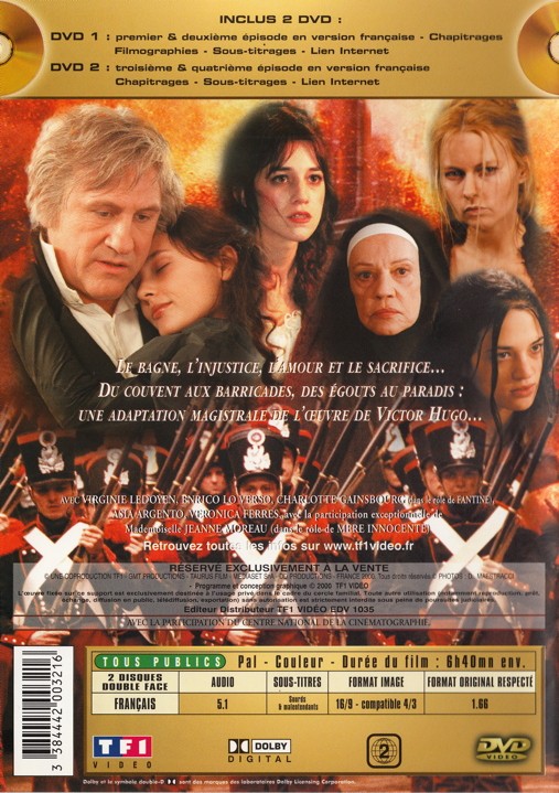 Fantine, une fille-mère, se meurt, Jean Valjean à ses côtés. Elle lui fait promettre de s'occuper de sa petite fille, Cosette, dont elle a dû se séparer parce qu'elle ne disposait pas des moyens pour la faire vivre décemment. Le policier Javert, qui détient des informations de première main sur Valjean, décide de l'arrêter, mais ce dernier parvient à s'enfuir, sans omettre d'emmener une partie de sa fortune. En cavale, il rencontre, par hasard, Cosette. L'enfant, qui n'a que 7 ans, effectue de durs travaux sous la férule des Thénardier, des aubergistes sans scrupules. Valjean rachète Cosette à prix d'or au vénal tavernier, qui projette de l'égorger...