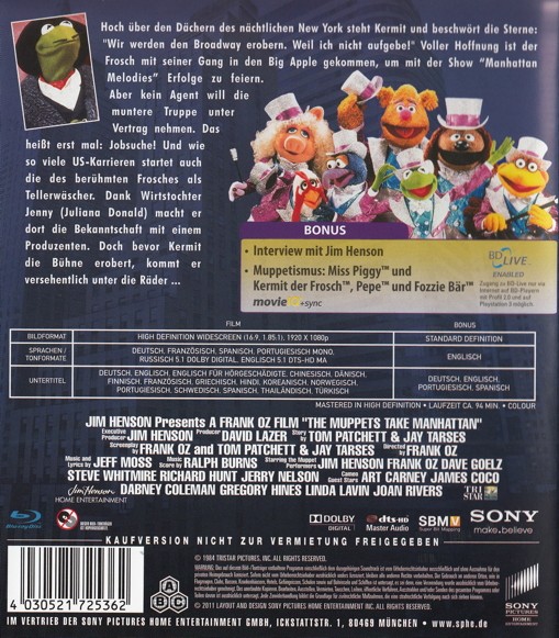 Nos célèbres petites marionnettes sont bien décidées à prendre d'assaut Broadway avec leur spectacle Manhattan Melodies . Après une arrivée mouvementée à New York, les voilà en quête d'un producteur. Hélas, l'accueil est loin d'être enthousiaste, les portes se ferment et la petite troupe désespère. Mais le show must go on ! et Kermit a plus d'un tour dans son sac !