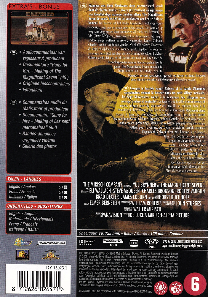 Eli Wallach, Charles Bronson, James Coburn, Robert Vaughn, Steve McQueen, Horst Buchholz, Bing Russell, Val Avery, Yul Brynner, Enrique Lucero...Roberto Contreras, Robert J. Wilke, Mario Navarro, Whit Bissell, Brad Dexter, Vladimir Sokoloff, Alex Montoya, Larry Duran, Valentin de Vargas, Rico Alaniz, Natividad Vacío, Pepe Hern, Jorge Martínez de Hoyos, Danny Bravo, Rosenda Monteros, John A. Alonzo