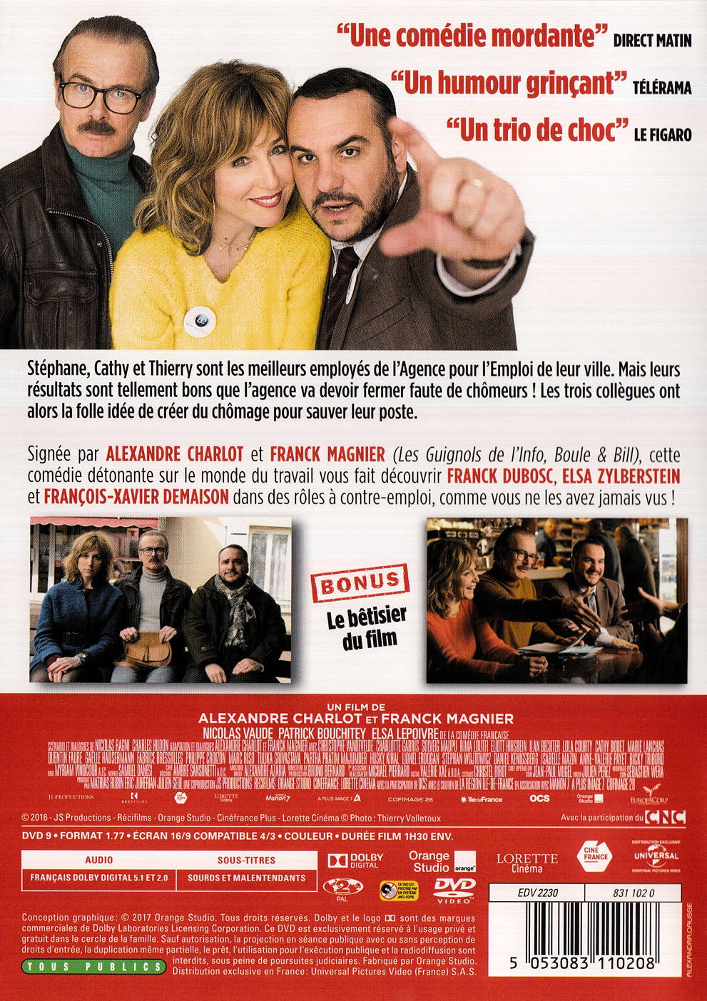 Stéphane, Cathy et Thierry sont les meilleurs employés de l'Agence pour l'Emploi de leur ville. Mais leurs résultats sont tellement bons que l'agence va devoir fermer faute de chômeurs ! Les trois collègues ont alors la folle idée de créer du chômage pour sauver leur poste.