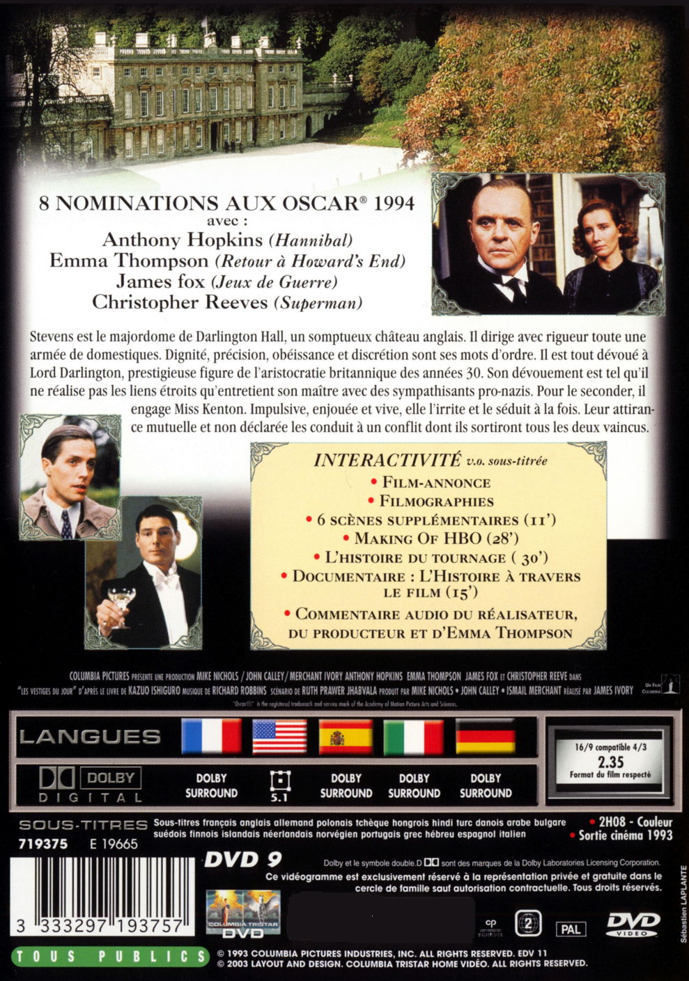 Stevens est le majordome de Darlington Hall, un somptueux château anglais. Il dirige avec rigueur toute une armée de domestiques. Dignité, précision, obéissance et discrétion sont ses mots d'ordre. Il est tout dévoué à Lord Darlington, prestigieuse figure de l'aristocratie britannique des années 30. Son dévouement est tel qu'il ne réalise pas les liens étroits qu'entretient son maître avec des sympathisants pro-nazis. Pour le seconder, il engage Miss Kenton. Impulsive, enjouée et vive, elle l'irrite et le séduit à la fois. Leur attirance mutuelle et non déclarée les conduit à un conflit dont ils sortiront tous les deux vaincus.