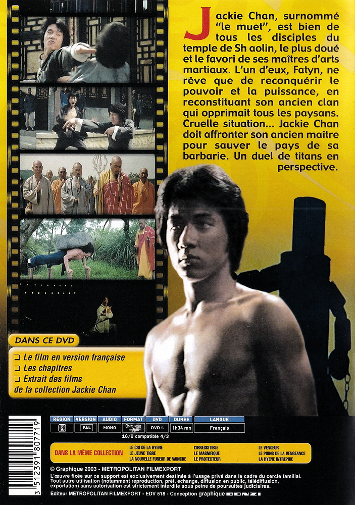Jackie Chan, surnommé "le muet", est bien de tous les disciples du temple de Shaolin, le plus doué et le favori de ses maîtres d'arts martiaux. L'un d'eux, Fatyn, ne rêve que de reconquérir le pouvoir et la puissance, en reconstituant son ancien clan qui opprimait tous les paysans. Jackie Chan va devoir affronter son ancien maître pour sauver le pays de la barbarie...