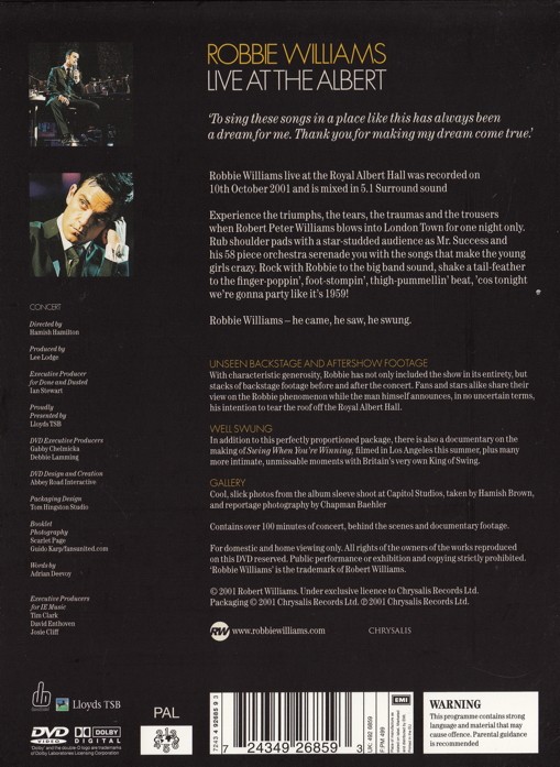 Experience the triumphs, the tears, the traumas and the trousers when Robert Peter Williams blows into London Town for one night only. Rub shoulder pads with with a star-studdet audience as Mr. Success and his 58 piece orchestra serenade you with the songs that make the young girls crazy. Rock with Robbie to the big band sound, shake a tail-feather to the finger-poppin', foot-stompin', thigh-pummellin'beat,'cost tonight we're gonna party like it's 1959!