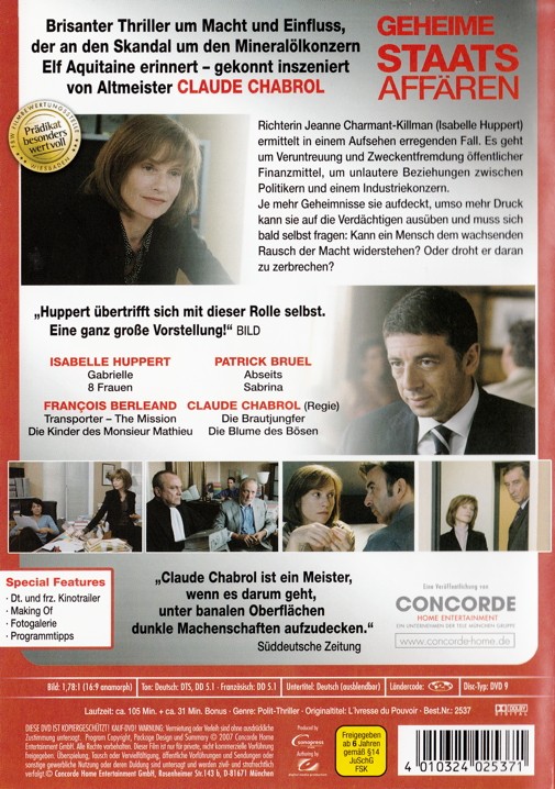 - Schauspieler Isabelle Huppert, François Berléand, Jacques Boudet, Pierre Vernier, Jean-Francois Balmer, Thomas Chabrol, Patrick Bruel, Robin Renucci, Philippe Duclos, Marilyne Canto