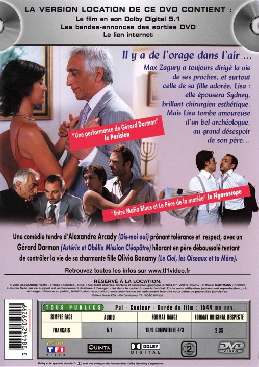 Que Lisa Zagury épouse Jean-Christophe Dupreux ! Non mais ça va pas ! D'abord, Lisa est fiancée à Sydney, c'est la promesse qu'a faite Max Zagury à son meilleur ami qui lui a sauvé la vie. D'ailleurs, Sydney est le gendre idéal : chirurgien, jeune, beau et juif. Lisa, elle, a des rêves, des désirs. Elle a rencontré Jean-Christophe lors de fouilles archéologiques pour lesquelles elle se passionne. Mais Max Zagury, propriétaire de nombreux casinos à travers le monde, a toujours tout décidé et en particulier pour sa fille. Et puis un mariage mixte dans la famille, c'est tout simplement hors de question!