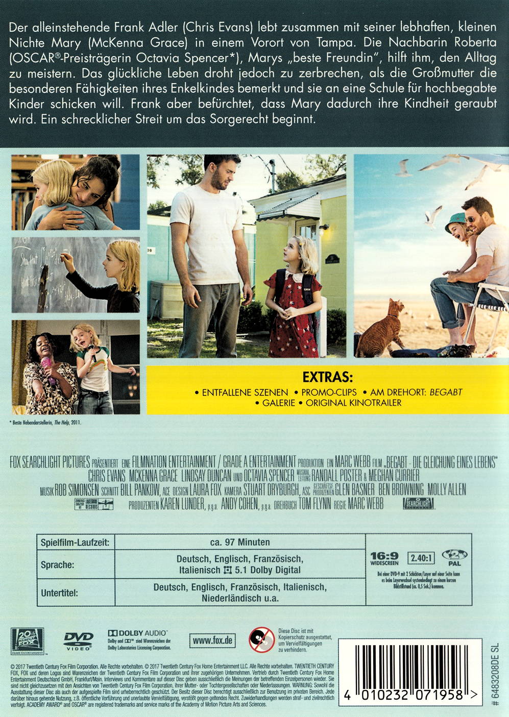 Chris Evans, Mckenna Grace, Lindsay Duncan, Octavia Spencer, Jenny Slate, Sophia Bell, Desmond Phillips, Jeremy Ambler, Will Buie Jr., Raegan-Alexis Santucci...AnnaLily Wynn, Mia Sinclair Jenness, Alyssa AnnMarie Marquez, Eva Coleman, Teresa L. Graves, Carissa Mejias, Sage Mayer, Jack Landry, Tommy Brown, Karleigh Chase