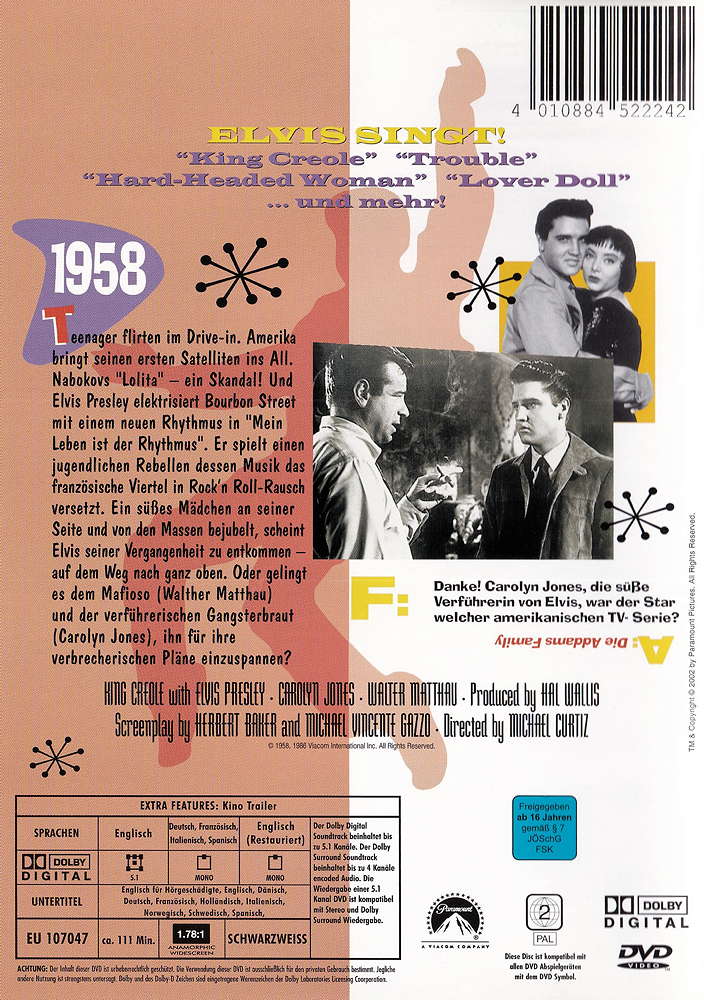 Es ist 1958. Frisch Verliebte treffen sich im Auto-Kino. Amerika schickt seinen ersten Satelliten ins All. Der Roman Lolita sorgt für Aufregung. Und in "Mein Leben ist der Rhythmus" legt Elvis Presley in der Bourbon Street ein neues Tempo vor. Er spielt einen jungen Kerl, der in Schwierigkeiten steckt, und der mit seiner Musik das französische Viertel ordentlich aufmischt. Mit süssen Mädchen an seiner Seite und den ihm zujubelnden Nachtclubbesuchern sieht es fast so aus, als könnte Elvis sich von seiner Vergangenheit verabschieden und richtig gross rauskommen. Oder wird er sich von einem Gangster und seiner Braut auf die schiefe Bahn bringen lassen?