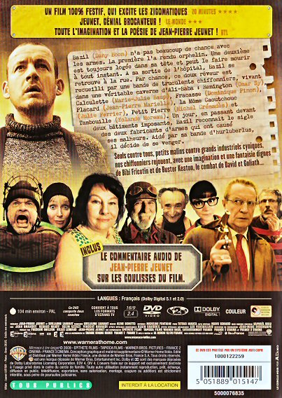 Une mine qui explose au coeur du désert marocain et, des années plus tard, une balle perdue qui vient se loger dans son cerveau... Bazil n’a pas beaucoup de chance avec les armes. La première l’a rendu orphelin, la deuxième peut le faire mourir subitement à tout instant. À sa sortie de l’hôpital, Bazil se retrouve à la rue. Par chance, ce doux rêveur, à l’inspiration débordante, est recueilli par une bande de truculents chiffonniers aux aspirations et aux talents aussi divers qu’inattendus, vivant dans une véritable caverne d’Ali-Baba. Un jour, en passant devant deux bâtiments imposants, Bazil reconnaît le sigle des deux fabricants d’armes qui ont causé ses malheurs. Aidé par sa bande d’hurluberlus, il décide de se venger…