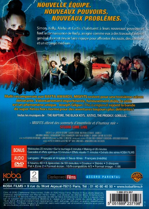 Multi-récompensée aux BAFTA AWARDS, MISFITS revient pour une troisième saison détonante. Volontairement impertinente, furieusement drôle, la série est un phénomène unique. Joseph Gilgun (This is england) rejoint la bande de super-héros hors norme pour des aventures toujours plus délirantes !