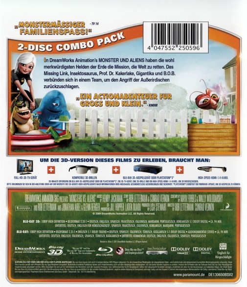 In DreamWorks Animation’s Monster und Aliens haben die wohl merkwürdigsten Helden der Erde die Mission, die Welt zu retten. Das Missing Link, Insektosaurus, Prof. Dr. Kakerlake, Gigantika und B.O.B. verbünden sich zu einem Team, um den Angriff der Ausserirdischen zurückzuschlagen.