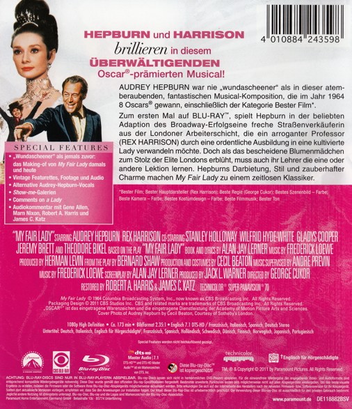 In dieser überaus beliebten Adaption des Broadway-Erfolgs spielt Hepburn eine freche Strassenverkäuferin aus der Londoner Arbeiterschicht, die ein arroganter Professor durch eine ordentliche Ausbildung in eine kultivierte Lady verwandeln möchte. Doch als das bescheidene Blumenmädchen zum Stolz der Elite Londons erblüht, muss auch ihr Lehrer die eine oder andere Lektion lernen. Hepburns Darbietung, Stil und zauberhafter Charme machen My Fair Lady zu einem zeitlosen Klassiker.