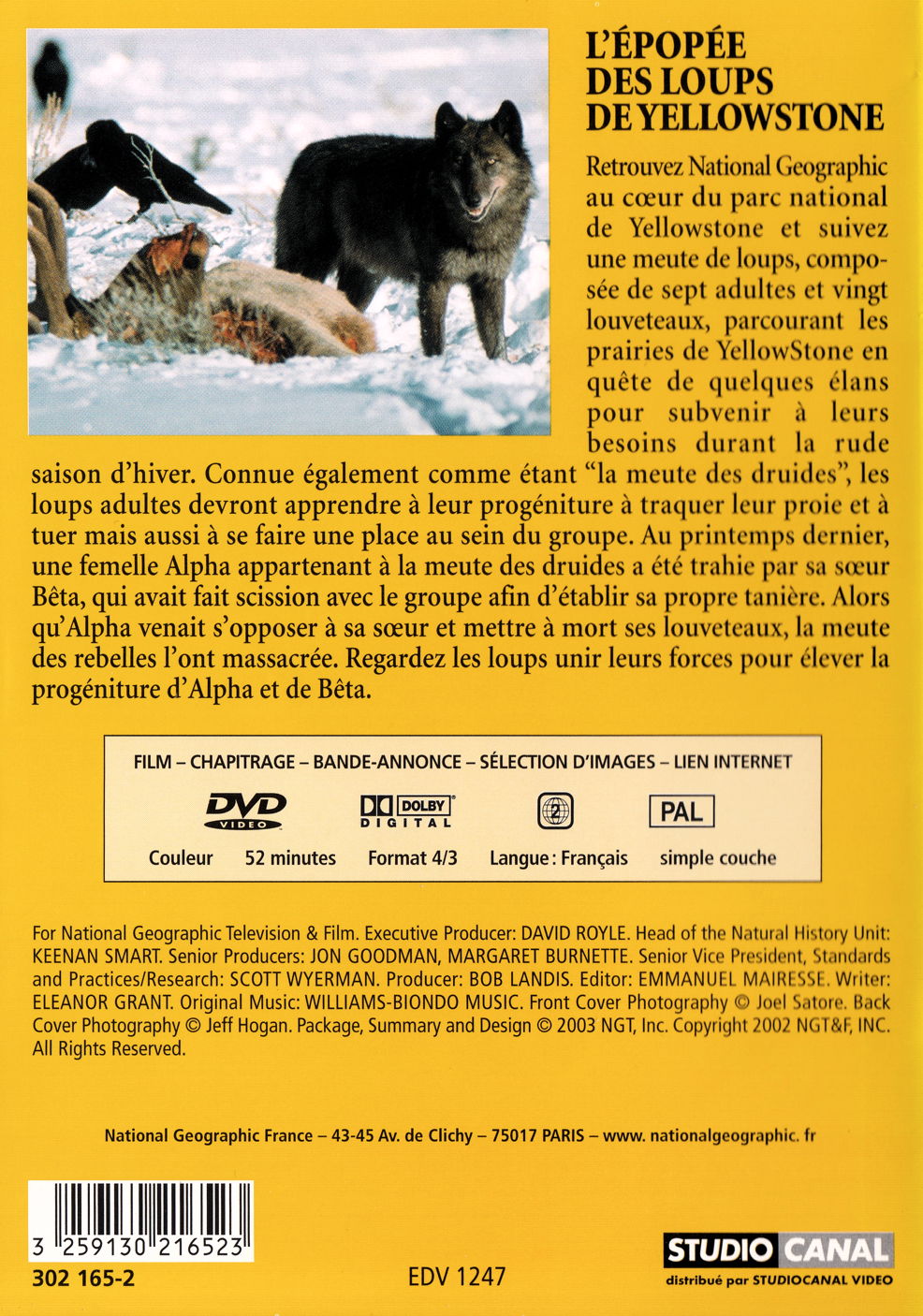 - Titre originale National Geographic - Wolves, a legend returns to Yellowstone