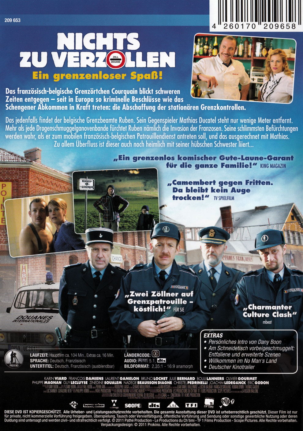 Das Grenzörtchen Courquain blickt schweren Zeiten entgegen: Dank dem kriminellen Beschluss der EU werden die stationären Grenzkontrollen abgeschafft. Apokalypse! So wird der frankophobe Ruben (Benoit Poelvoorde) ausgerechtnet mit dem fran zö si schen Grenzbeamten Mathias (Dany Boon) zum mobilen Patrouillendienst abkommandiert. Aber es kommt noch schlimmer: Seine Schwester muss sich auch noch in Mathias verlieben!