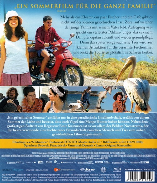 Yannis a 14 ans et vit sur une petite île grecque qui a su demeurer sauvage. Depuis la mort de sa mère, la relation qui l’unit avec son père, Démosthène, s’est durcie. Lors d’un voyage à Athènes, il sauve d’une mort probable un jeune pélican du nom de Nicostratos. Contraint de l’élever en cachette pour soustraire à la colère paternelle, Yannis devient bien malgré lui une vedette dans son île qui se trouve transformée par le tourisme grâce à ce magnifique pélican blanc, le plus grand oiseau d’Europe ! C’est un été unique, celui dont on se souvient tout le reste de sa vie. Yannis y découvrira l’amour que son père lui porte et qu’il n’avait jamais su lui témoigner.