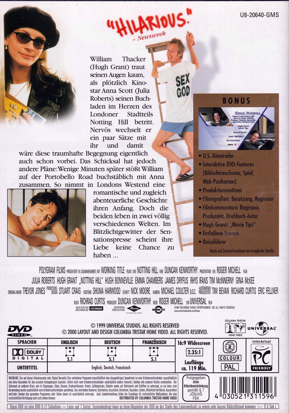 Julia Roberts, Hugh Grant, Hugh Bonneville, Emma Chambers, James Dreyfus, Stuart Craig, Michael Coulter, Shuna Harwood, Pedro Sabrosa, Nick Moore...Duncan Kenworthy, Tim Bevan, David Stephenson, Richard Curtis, Andrew Ackland-Snow, David Allday, Eric Fellner