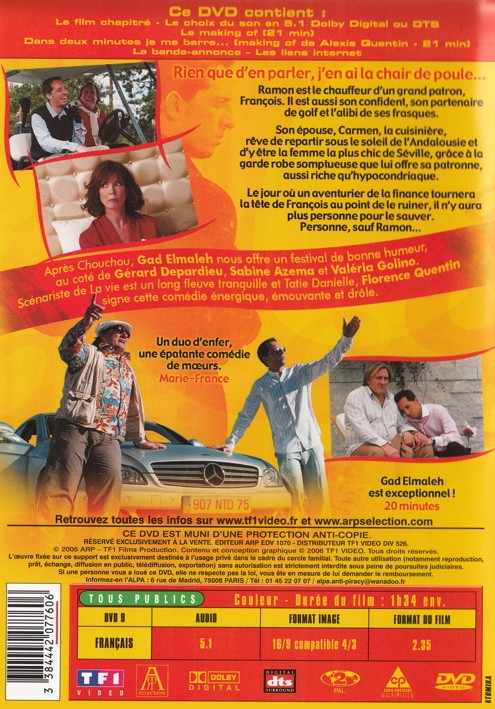 Ramon Holgado est le chauffeur d'un grand patron. Il est aussi son confident, son partenaire de golf et l'alibi de ses frasques. Son épouse, Carmen, rêve de repartir sous le soleil de l'Andalousie avec son Ramon, et d'être la femme la plus chic de Séville grâce à la garde-robe somptueuse que lui offre sa patronne, aussi riche qu'hypocondriaque. Le jour où un aventurier de la finance fera tourner la tête de François au point de le ruiner, il n'y aura plus personne pour le sauver. Personne, sauf Ramon...