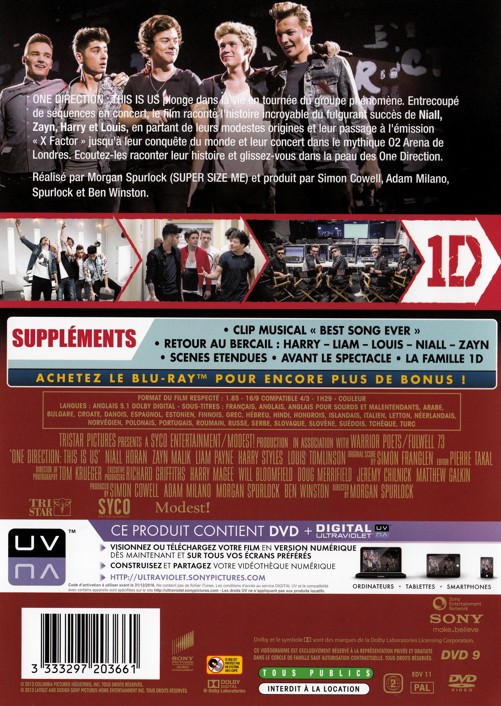 "One Direction: This Is Us" plonge dans la vie en tournée du groupe phénomène. Entrecoupé de séquences en concert, le film raconte l'histoire incroyable du fulgurant succès de Niall, Zayn, Harry et Louis, en partant de leurs modestes origines et leur passage à l'émission "X Factor" jusqu'à leur conquête du monde et leur concert dans le mythique O2 Arena de Londres. Ecoutez-les raconter leur histoire et glissez-vous dans la peau des One Direction.
