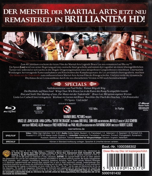 - Schauspieler John Saxon, Bruce Lee, Ahna Capri, Jim Kelly, Bob Wall