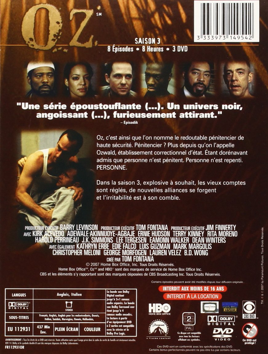 Oz n'est pas une prison comme les autres. Le maître des lieux, Tim McManus, croît en une détention plus humaine. A l'intérieur du pénitencier a donc été créée Emerald City, une unité expérimentale où les prisonniers vivent en autogestion... Violence, drogue, sexe... Une série coup de poing parfois très dure, à ranger au panthéon des séries exceptionnelles !