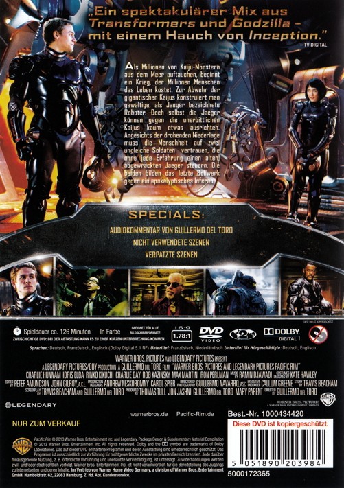 Eine außerirdische Invasion völlig unerwarteten Ursprungs bricht über die Menschheit herein. Nicht aus dem All kommen die Feinde, sondern aus den Tiefen des Pazifischen Ozeans. Die monströsen Kreaturen, auch Kaiju genannt, attackieren weltweit Küstenstädte und fordern Millionen Menschenleben. Um die Kaiju zu besiegen, entwickelten Wissenschaftler überdimensionale Maschinen namens "Jaeger". Zwei Piloten müssen so einen gigantischen Roboter steuern, indem sie ihre Gehirne miteinander und mit der Maschine verknüpfen. Der Pilot Raleigh Becket (Charlie Hunnam) erzielt bei der Bekämpfung der Kaiju besonders gute Erfolge und zunächst scheint es, als würde die Verteidigungsstrategie aufgehen. Doch dies ist ein Irrtum, die Aliens gewinnen erneut die Oberhand und das nicht länger erfolgversprechende Jaeger-Programm soll eingestampft werden. Einzig Marshall Stacker Pentecost (Idris Elba) glaubt noch an die Roboter und holt Becket zurück, der nach einem folgenschweren Kampfeinsatz die Einheit verlassen hat. Zusammen mit der unerfahrenen Pilotin Mako Mori (Rinko Kikuchi) soll er "seinen" Jaeger in ein letztes Gefecht führen, um die Menschheit vor dem Untergang zu bewahren. Denn auch wenn die Kaiju übermächtig scheinen, so gibt es doch noch eine Möglichkeit, sie zu überlisten...