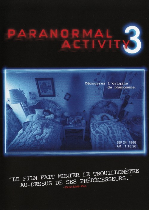 Paranormal Activity 3 vous emmène là où le phénomène a commencé et délivre les plus lourds secrets. Les caméras de surveillance sont allumées et enregistrent les moments effrayants où le mal commence et terrorise pour la première fois les jeunes soeurs Katie et Kristi. Une oeuvre dérangeante qui vous plonge dans la terreur absolue. Préparez-vous à ne plus dormir tranquillement !