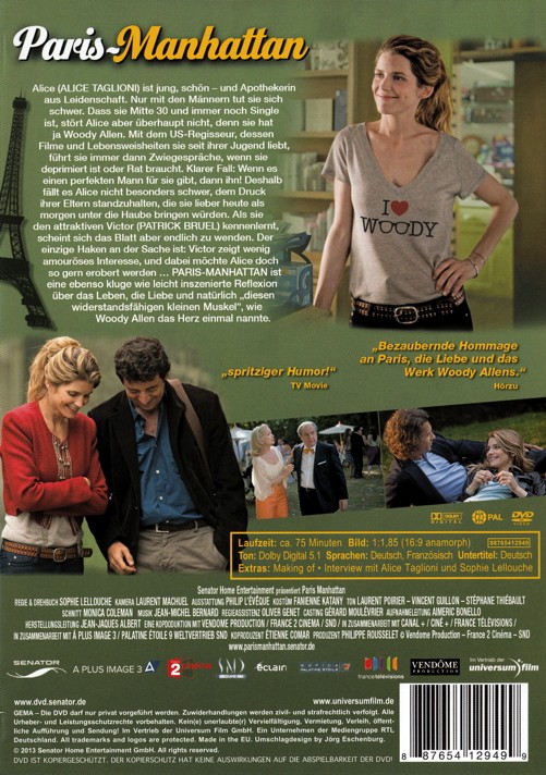 Alice ist schön - und Apothekerin aus Leidenschaft. Nur mit den Männern tut sie sich schwer. Dass sie Mitte 30 und immer noch Single ist, stört Alice aber überhaupt nicht, denn sie hat ja Woody Allen. Mit dem US-Regisseur, dessen Filme und Lebensweisheiten sie seit ihrer Jugend liebt, führt sie immer dann Zwiegespräche, wenn sie deprimiert ist oder Rat braucht. Klarer Fall: Wenn es einen perfekten Mann für sie gibt, dann ihn! Deshalb fällt es Alice nicht besonders schwer, dem Druck ihrer Eltern standzuhalten, die sie lieber heute als morgen unter die Haube bringen würden. Als sie den attraktiven Victor kennenlernt, scheint sich das Blatt aber endlich zu wenden. Der Haken an der Sache: Victor zeigt wenig amouröses Interesse, und dabei möchte Alice doch so gern erobert werden...
