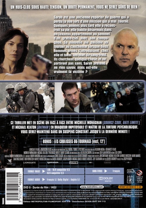 Sarah est une ancienne reporter de guerre qui a perdu la vue lors d'une mission qui a mal tourné. Quelques années plus tard elle a reconstruit sa vie, elle habite désormais dans un luxueux appartement au sommet d'un gratte-ciel avec son compagnon. Sa nouvelle vie paisible va tourner au cauchemar lorsque deux hommes armés s'introduisent chez elle et tuent son mari de sang-froid. Ils cherchent quelque-chose, et ne partiront pas sans, Sarah prétend ne rien savoir, mais est elle vraiment la victime ?