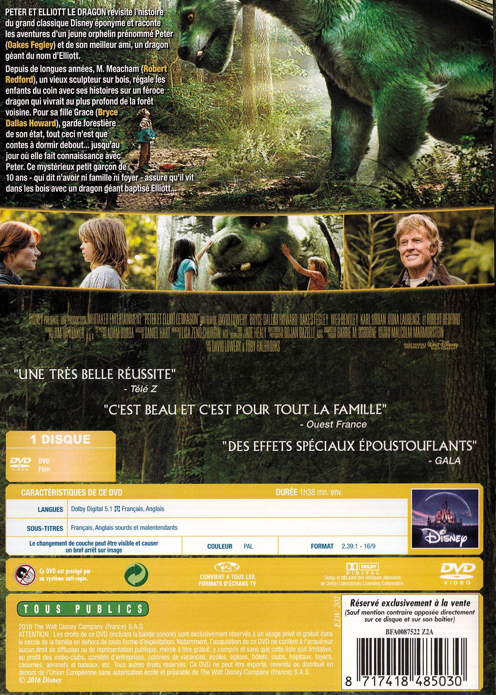 Depuis de longues années, M. Meacham, un vieux sculpteur sur bois, régale les enfants du coin avec ses histoires sur un féroce dragon qui vivrait au plus profond de la forêt voisine. Pour sa fille Grace, garde forestière de son état, tout ceci n'est que contes à dormir debout... jusqu'au jour où elle fait connaissance avec Peter. Ce mystérieux petit garçon de 10 ans - qui dit n'avoir ni famille ni foyer - assure qu'il vit dans les bois avec un dragon géant baptisé Elliott. Et la description qu'il en fait correspond étonnamment à celui dont parle son père? Avec l'aide de la jeune Natalie - la fille de Jack, le propriétaire de la scierie -, Grace va tout mettre en oeuvre pour découvrir qui est vraiment Peter, d'où il vient, et percer le secret de son incroyable histoire...