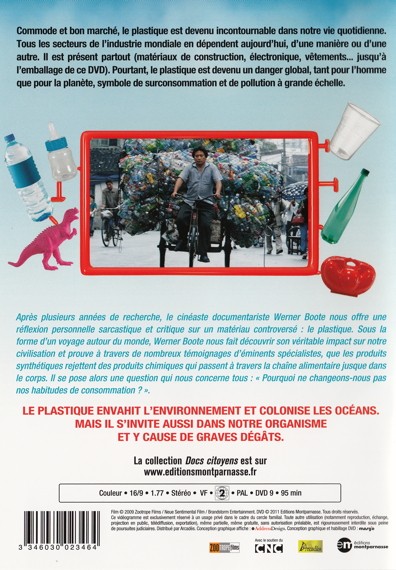 Commode et bon marché, le plastique est devenu incontournable dans notre vie quotidienne. Tous les secteurs de l'industrie mondiale en dépendent aujourd'hui, d'une manière ou d'une autre. Il est présent partout (matériaux de construction, électronique, vêtements... jusqu'à l'emballage de ce DVD). Pourtant, le plastique est devenu un danger global, tant pour l'homme que pour la planète, symbole de surconsommation et de pollution à grande échelle.