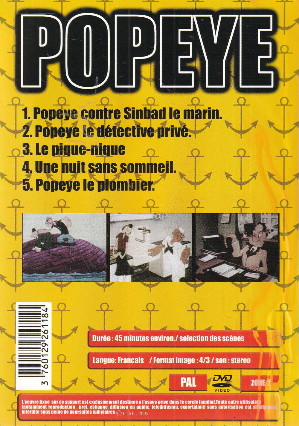 4) Une nuit sans sommeil 5) Popeye plombier