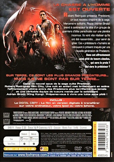 Robert Rodriguez présente Predators, un tout nouveau chapitre de la saga. Mercenaire solitaire, Royce (Adrien Brody) prend à contrecoeur la tête d'un groupe de guerriers d'élite parachutés sur une planète inconnue. Ils vont vite réaliser qu'ils ont été rassemblés... pour servir de gibier. Ces "prédateurs" humains se retrouvent à présent traqués par une nouvelle génération de Predators. Dans cet affrontement sans pitié de tueurs absolus, qui sera la proie? Qui sera le prédateur?