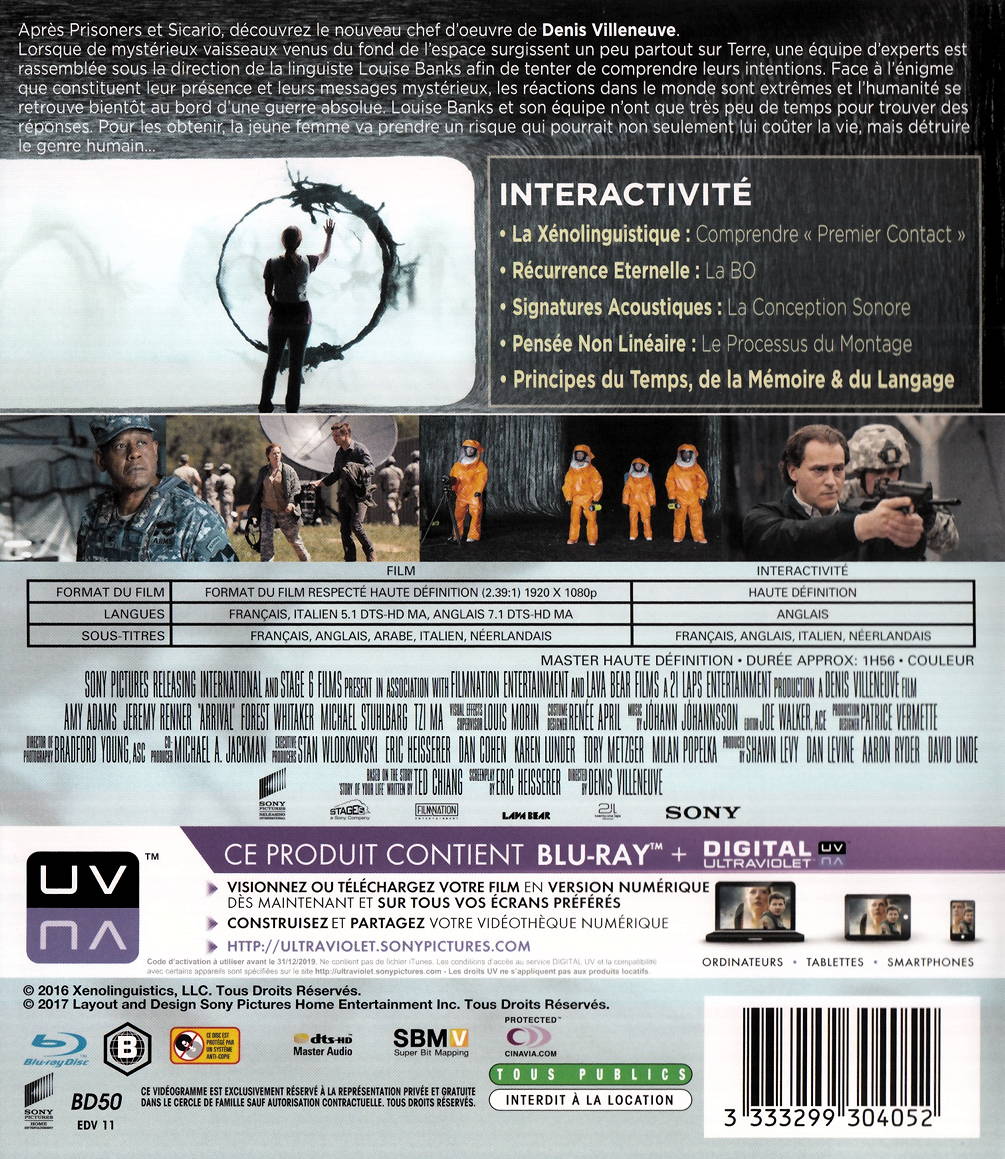 Amy Adams, Jeremy Renner, Forest Whitaker, Michael Stuhlbarg, Brittany Teo, Tammie Sutherland, Kathleen Stavert, Shawn Campbell, Carmela Nossa Guizzo, Leisa Reid...Genevieve Sirois, Michael Nangreaves, Chloë Bellande, Robert D. Morais, Laurean Adrian Parau, Karen Belfo, Hal Roberts, Leslie Baker, Bineyam Girma, Daniel Esteban, Mustafa Haidari, Abigail Pniowsky, Julian Casey, Russell Yuen, Joe Cobden, Nathaly Thibault, Mark O'Brien, Tzi Ma, Pat Kiely