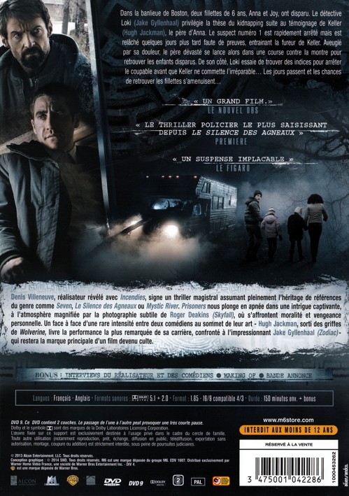 Dans la banlieue de Boston, deux fillettes de 6 ans, Anna et Joy, ont disparu. Le détective Loki privilégie la thèse du kidnapping suite au témoignage de Keller, le père d’Anna. Le suspect numéro 1 est rapidement arrêté mais est relâché quelques jours plus tard faute de preuve, entrainant la fureur de Keller. Aveuglé par sa douleur, le père dévasté se lance alors dans une course contre la montre pour retrouver les enfants disparus. De son côté, Loki essaie de trouver des indices pour arrêter le coupable avant que Keller ne commette l’irréparable... Les jours passent et les chances de retrouver les fillettes s’amenuisent...