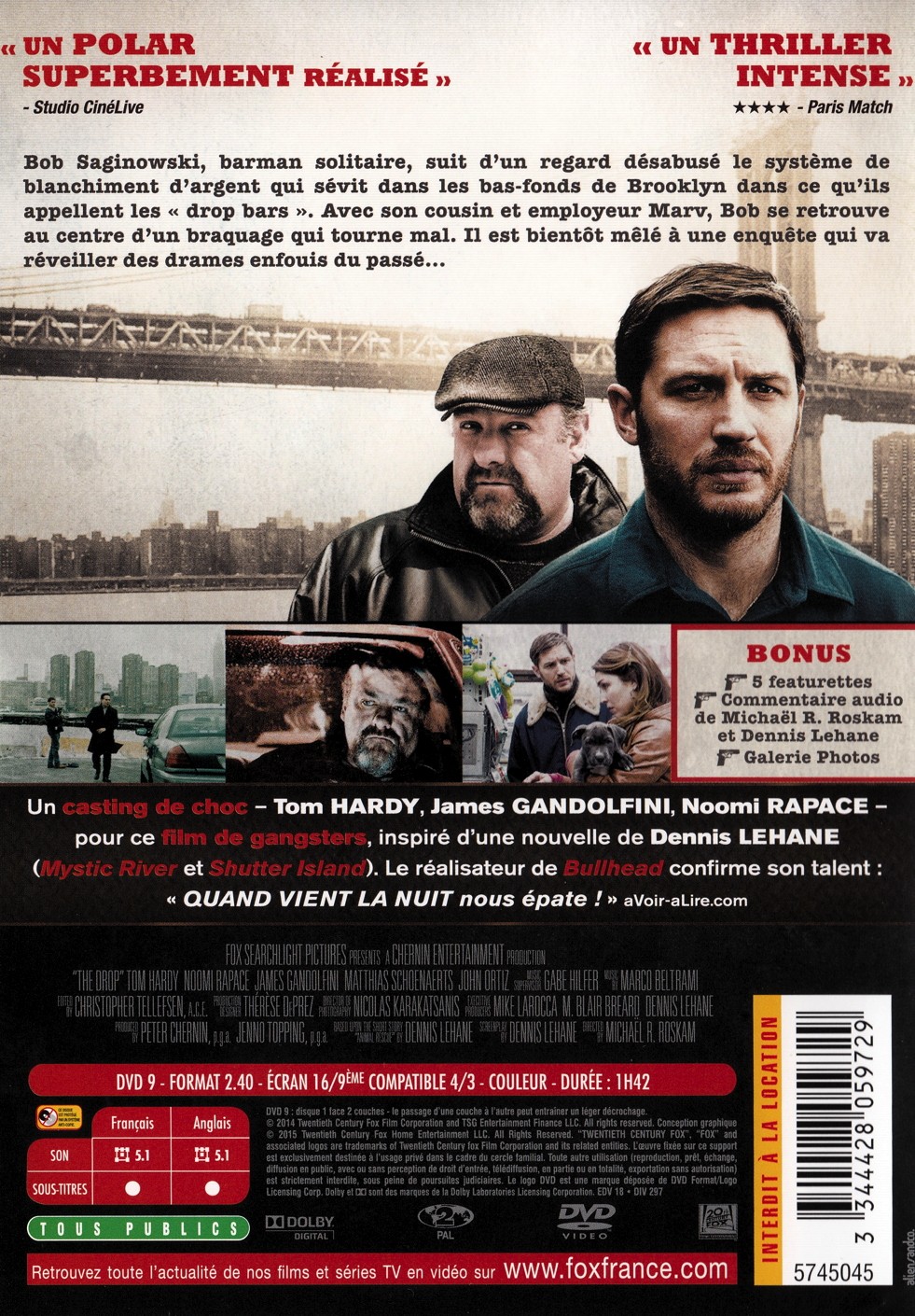 Tom Hardy, Noomi Rapace, James Gandolfini, Matthias Schoenaerts, John Ortiz, David C. Robinson, Christopher Tellefsen, Blair Breard, Ellen Lewis, Nicolas Karakatsanis...Peter Chernin, Thérèse DePrez, Jenno Topping, Mike Larocca, Dennis Lehane