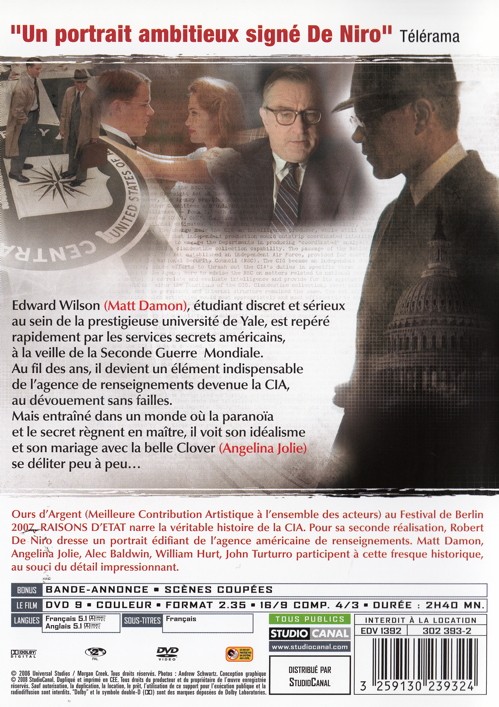 Pour Edward Wilson, seul témoin du suicide de son père et membre de la Skull and Bones Society à l'Université de Yale, l'honneur et la discrétion sont des valeurs primordiales. Ce sont ces qualités qui poussent la CIA, l'agence gouvernementale qui vient d'être créée, à le recruter.