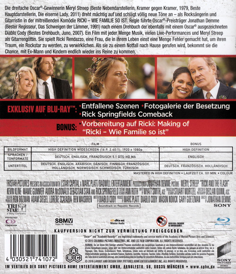 Pour accomplir son rêve et devenir une rock star, Ricki Rendazzo a sacrifié beaucoup de choses et commis bien des erreurs... Dans l'espoir de se racheter et de remettre de l'ordre dans sa vie, elle revient auprès des siens.