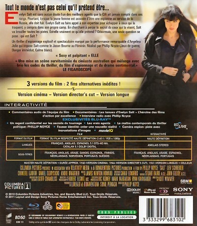 Evelyn Salt est sans aucun doute l’un des meilleurs agents que la CIA ait jamais comptés dans ses rangs. Pourtant, lorsque la jeune femme est accusée d’être une espionne au service de la Russie, elle doit fuir. Evelyn Salt va faire appel à sa remarquable expertise pour échapper à ceux qui la traquent, y compris dans son propre camp. En cherchant à percer le secret de ceux qui la visent, Salt va brouiller toutes les pistes. Est-elle vraiment ce qu’elle prétend ? Désormais, une seule question se pose : qui est Salt ?