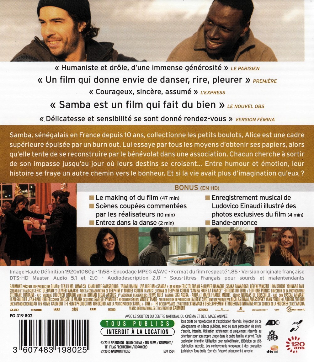 Samba, sénégalais en France depuis 10 ans, collectionne les petits boulots ; Alice est une cadre supérieure épuisée par un burn out. Lui essaye par tous les moyens d'obtenir ses papiers, alors qu'elle tente de se reconstruire par le bénévolat dans une association. Chacun cherche à sortir de son impasse jusqu'au jour où leurs destins se croisent... Entre humour et émotion, leur histoire se fraye un autre chemin vers le bonheur. Et si la vie avait plus d'imagination qu'eux ?