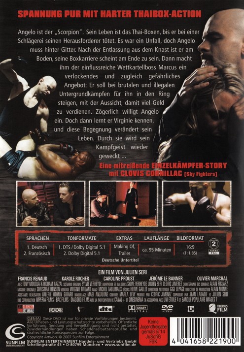 Angelo ne vit que pour la boxe thaï. Ecarté injustement des championnat, il tue accidentellement le challenger dans un combat de rue. A sa sortie après six ans de prison, c'est une épave. Mais par amour, il va changer, devenir un autre, une machine à cogner, à prendre des coups, à combattre. Il va devenir Scorpion...