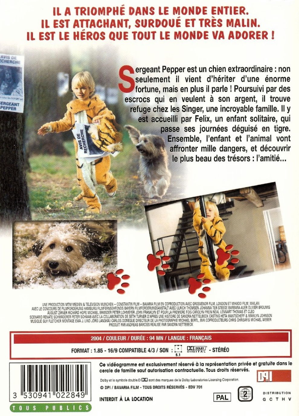 Sergeant Pepper est un chien extraordinaire : Non seulement il vient d hériter d une énorme fortune, mais en plus il parle ! Poursuivi par des escrocs qui en veulent à son argent, il trouve refuge chez les Singer, une incroyable famille. Il y est accueilli par Felix, un enfant solitaire, qui passe ses journées déguisé en tigre. Ensemble, l enfant et l animal vont affronter mille dangers, et découvrir le plus beau des trésors: l amitié...