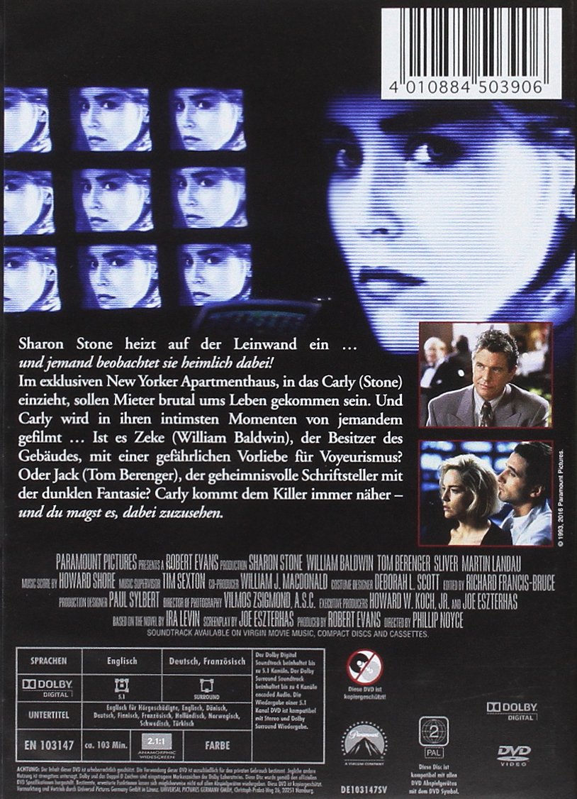 - Schauspieler Sharon Stone, William Baldwin, Tom Berenger, Colleen Camp, Amanda Foreman, Ira Levin, Howard W. Koch Jr., Vilmos Zsigmond, Robert Evans, Joe Eszterhas