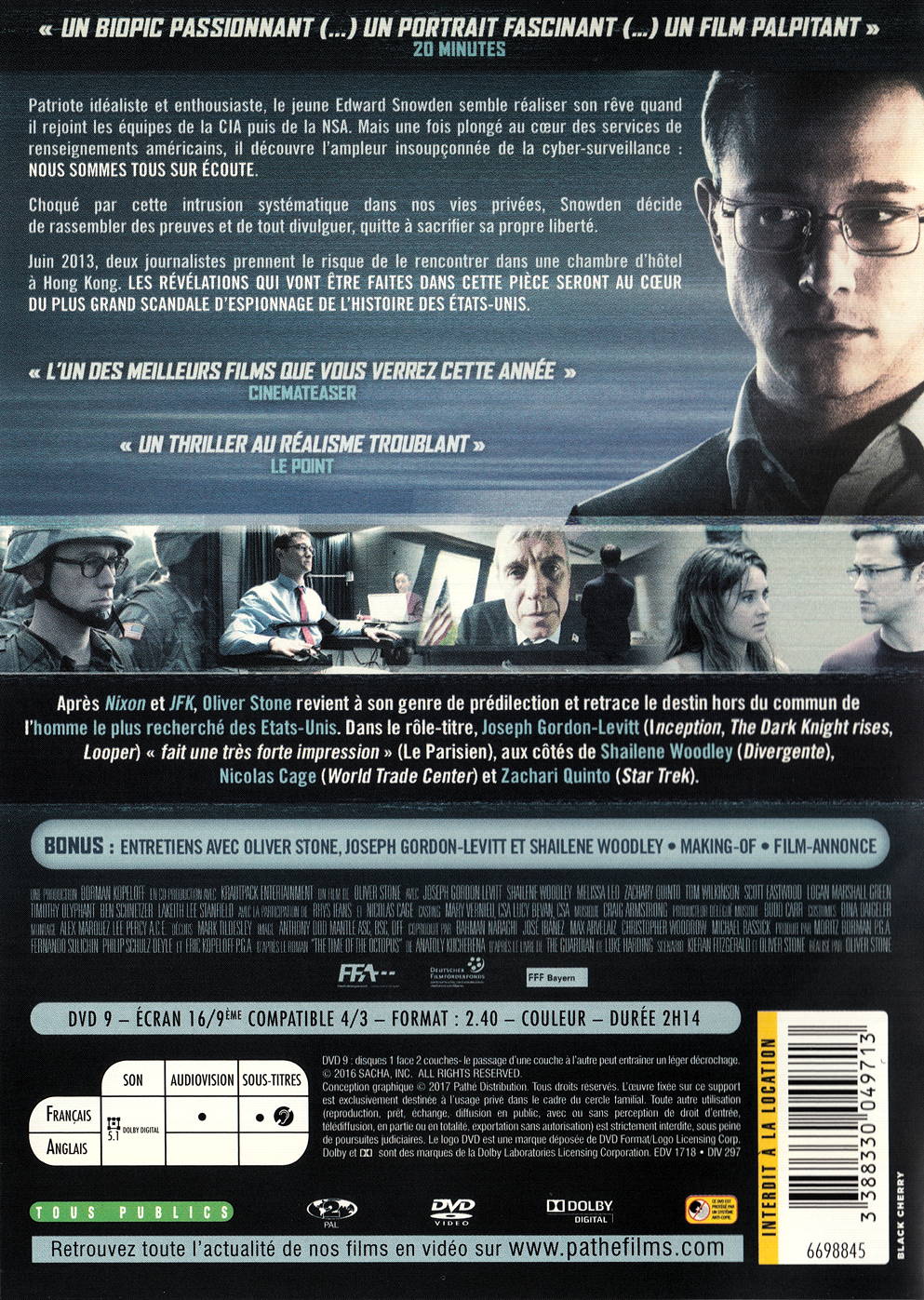 Edward Snowden semble réaliser son rêve quand il rejoint les équipes de la CIA puis de la NSA. Mais il découvre vite l'ampleur insoupçonnée de la cyber-surveillance au coeur des Services de Renseignements américains : nous sommes tous sur écoute. Choqué, Snowden décide de rassembler des preuves et de tout divulguer, quitte à sacrifier sa propre liberté.