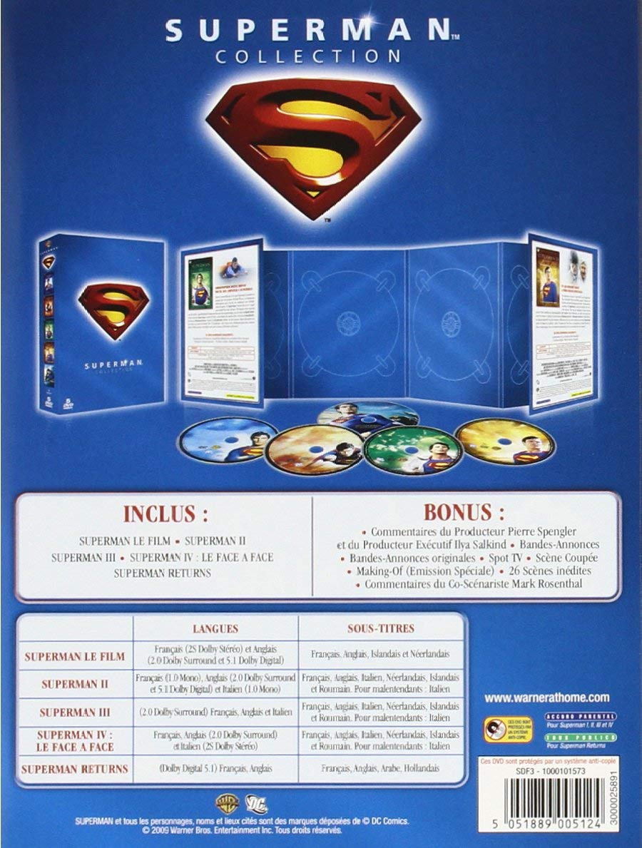 Du premier film Superman avec Christopher Reeve à la réinterprétation du mythe par Bryan Singer, retrouvez les 5 aventures de l'Homme de d'Acier dans ce coffret 5 DVD...