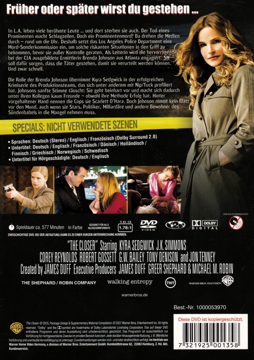 - Schauspieler Kyra Sedgwick, J.K. Simmons, Corey Reynolds, Robert Gosset, G.W. Bailey, Anthony John Denison, Raymond Cruz, Jon Tenney, Gina Ravera