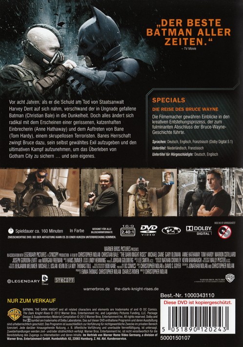 - Titre The dark knight rises [DVD]
