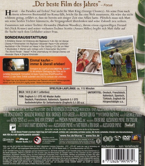 A Hawaii, la vie d'une famille bascule. Parce que sa femme vient d'être hospitalisée suite à un accident de bateau, Matt King tente maladroitement de se rapprocher de ses deux filles, Scottie, une gamine de dix ans vive et précoce, et Alexandra, une adolescente rebelle de dix-sept ans. Il se demande aussi s'il doit vendre les terres familiales, les dernières plages tropicales vierges des îles, héritées de ses ancêtres hawaiiens. Quand Alexandra lui révèle que sa mère avait une liaison, le monde de Matt vacille. Avec ses deux filles, il part à la recherche de l'amant de sa femme. Durant une semaine essentielle, au fil de rencontres tour à tour drôles, perturbantes et révélatrices, il va finalement prendre conscience que sa principale préoccupation est de reconstruire sa vie et sa famille...