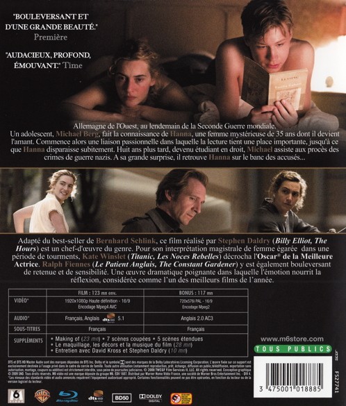 Allemagne de l'Ouest, au lendemain de la Seconde Guerre mondiale.Un adolescent, Michael Berg, fait par hasard la connaissance de Hanna, une femme de 35 ans dont il devient l'amant. Commence alors une liaison passionnelle dans laquelle la la lecture tient une place importante, jusqu'à ce que Hanna disparaisse subitement. Huit ans plus tard, devenu étudiant en droit, Michael assiste aux procès des crimes de guerre nazis. A sa grande surprise, il retrouve Hanna sur le banc des accusés...