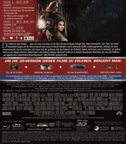 Die Welt hat viele Helden... aber nur einer von ihnen ist ein Gott. Als der arrogante Krieger Thor (Chris Hemsworth) von seiner Heimatwelt Asgard auf die Erde verbannt wird, muss er darum kämpfen seine verlorenen Kräfte wiederzugewinnen. Verfolgt von einer Invasionsmacht die ihn vernichten soll, muss sich der gefallene Gott des Donners der Schlacht stellen und lernen, was es bedeutet, ein wahrer Held zu sein. Natalie Portman (Black Swan) und Anthony Hopkins (Beowulf) brillieren in diesem Blockbuster das von den Kritikern "ein gigantisches Superhelden-Actionfeuerwerk" (BIG PICTURE) genannt wird.