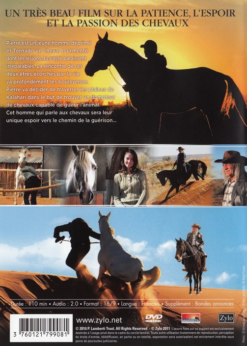TORNADO est une histoire vraie, de patience, d endurance et de passion. Pierre, un jeune homme dépressif et blessé et Tornado, un cheval émotif et tourmenté, vont vivre une belle histoire d amitié. Sentant le potentiel de Tornado, Pierre va se lancer dans un long voyage vers Noenieput, à travers le Groen Kalahari, dans le but de rencontrer Barrie Burger, un homme qui parle aux chevaux. Grâce aux conseils de Barrie, Pierre et Tornado s embarquent dans un long voyage vers la guérison et la recherche de soi, qui changera leurs vies à jamais.